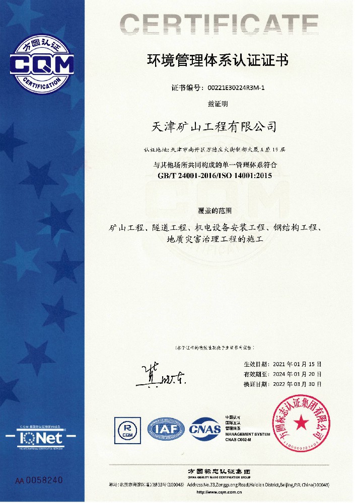 環境管理體系認證證書